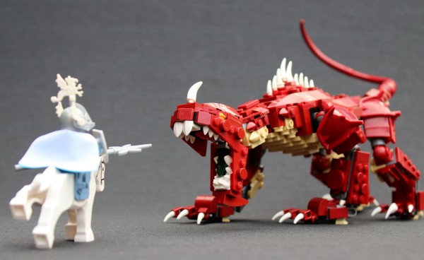 Steven Erickson a réalisé ce dragon dont la ligne est absolument magnifique. Il a réussi à lui conférer une expression et surtout des postures de prédateur ultime, je n’aimerais pas me retrouver face à lui ! Et la recherche du détail est poussée à l’extrême, comme en témoigne l’utilisation des couleurs avec le beige qui est présent non seulement sur le ventre, mais également sur l’intérieur des pattes… On dirait qu’il va bondir !