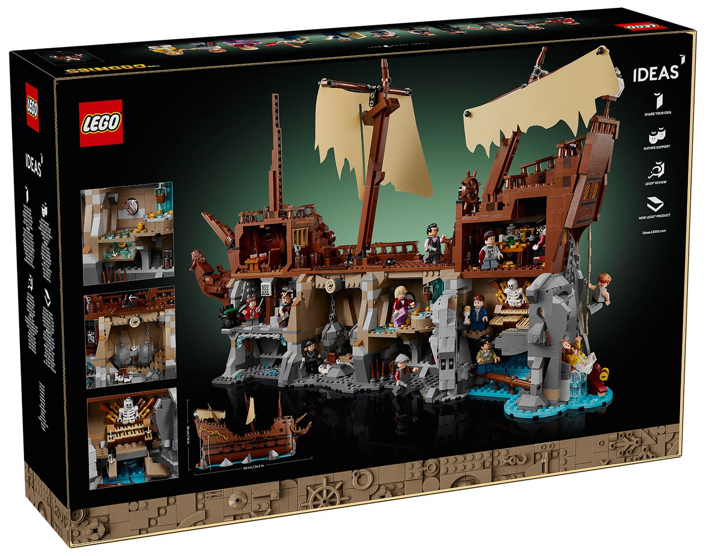 Cette adaptation du grand classique des années 80 Les Goonies (1985) reprend sous la forme du bateau pirate de Willy le Borgne un best of des principales scènes du film. Ce set est inspiré de ce projet qui avait gagné l’an dernier le challenge LEGO Ideas Années 80 « If we could turn back time » (l’autre gagnant de ce concours a donné le set LEGO Ideas 21361 Gremlins: Gizmo disponible depuis le 1er octobre).