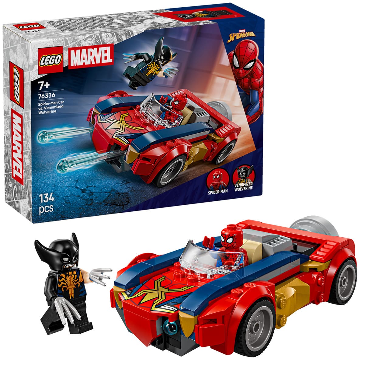 - LEGO Marvel 76336 Spider-Man Car vs. Venomized Wolverine (134 pièces, 19,99€)