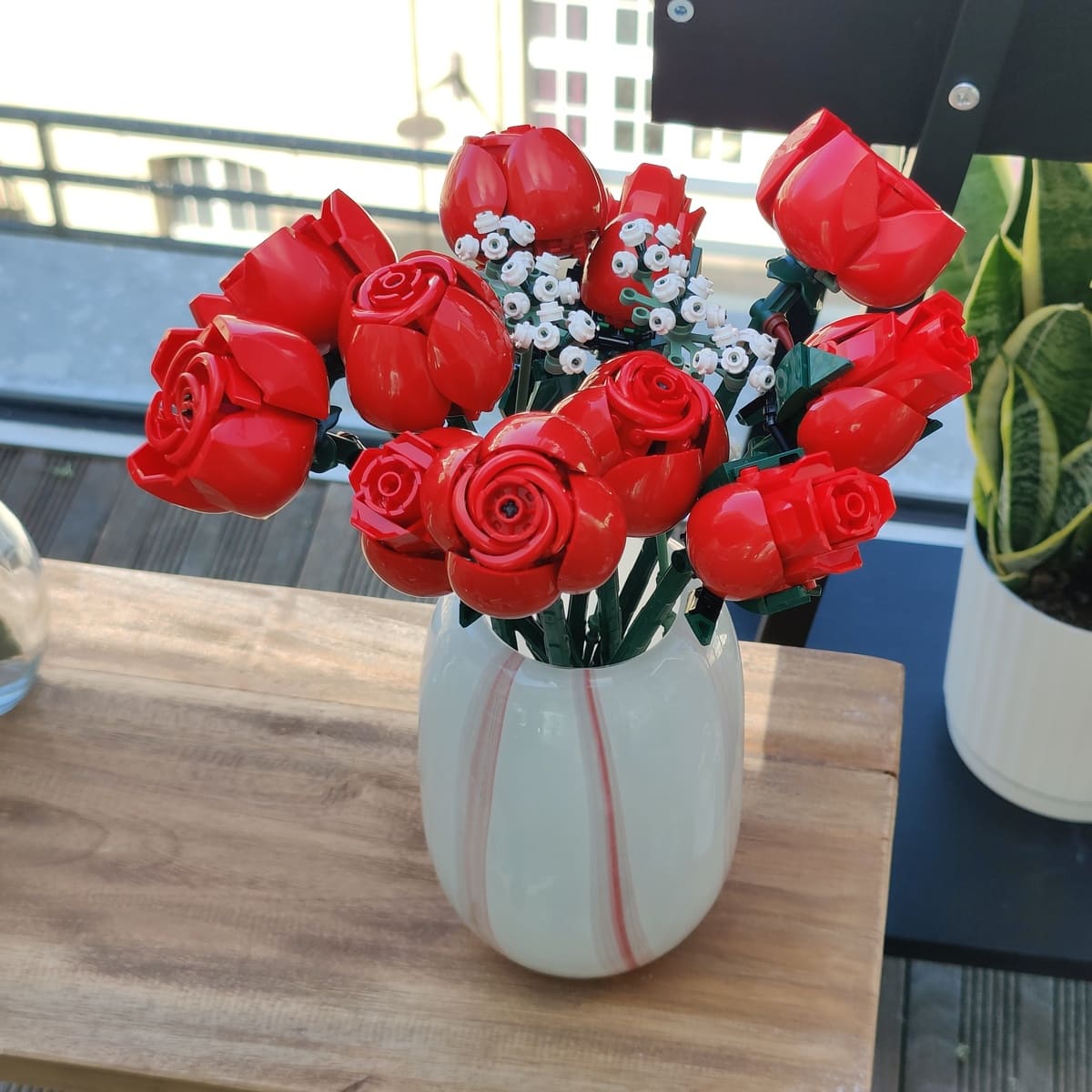 Quelques photos du joli set LEGO Icons 10328 Bouquet of Roses (59,99€) disponible depuis le 1er janvier 2024, et qui existe aussi en rose depuis le 1er octobre 2025 sous la référence LEGO Botanicals 10374 Bouquet of Pink Roses (59,99€ aussi).