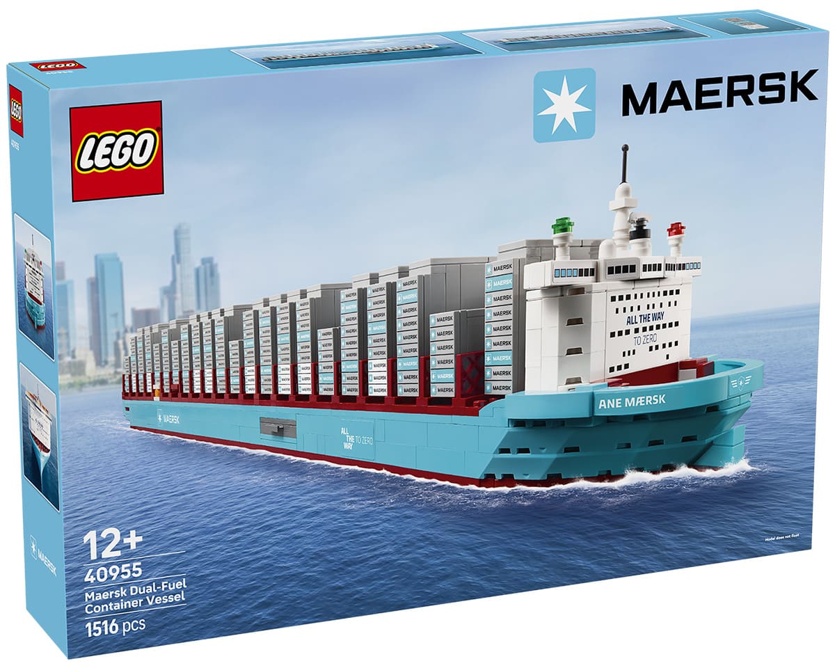 LEGO dévoile aujourd’hui le nouveau set LEGO 40955 Maersk Dual-Fuel Container Vessel (1516 pièces, 149,99€) qui sera disponible le 1er mars 2026.