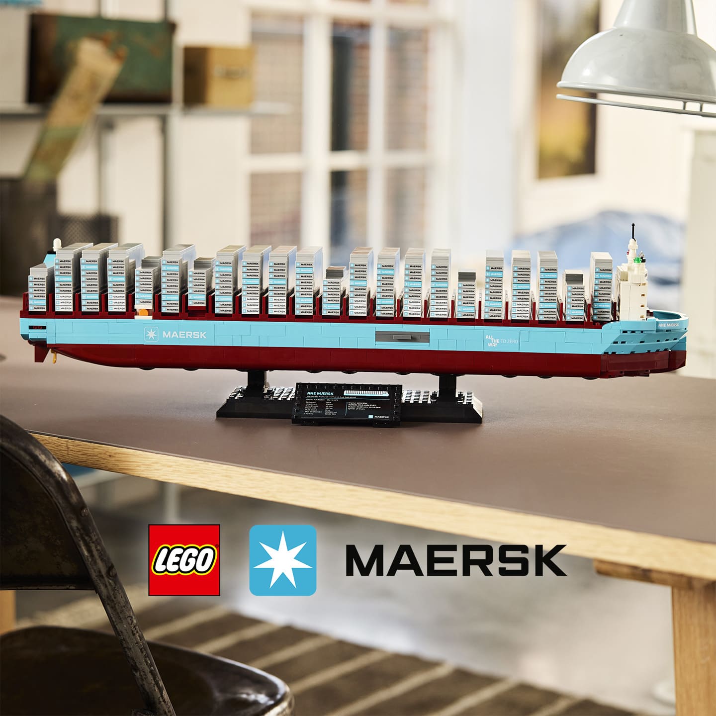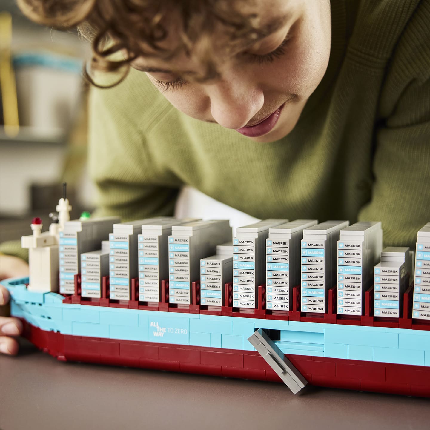 Douze ans après le gros bateau LEGO Creator Expert 10241 Maersk Line Triple-E, nous obtenons donc une nouvelle maquette de bateau porte container, qui étrangement ne rentre pas dans la gamme LEGO Icons. Le Ane Maersk, construit en 2024, est le premier grand porte-conteneurs « écolo » fonctionnant au méthanol.