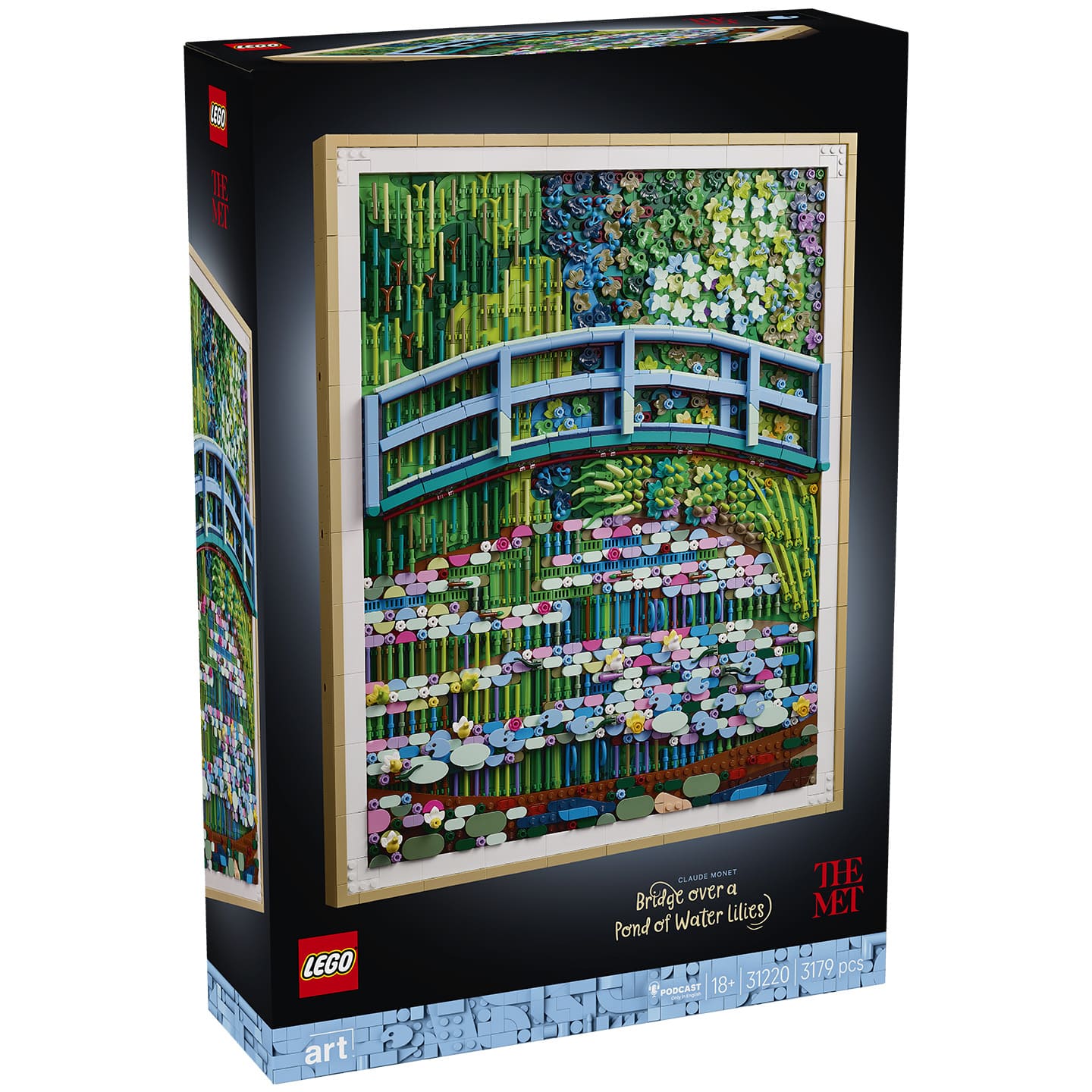 Après les tableaux LEGO Ideas 21333 The Starry Night et LEGO Art 31215 Vincent van Gogh – Sunflowers, LEGO propose cette fois une peinture de Claude Monet tirée de sa série des Nymphéas, et plus précisément le Pont au-dessus d’un bassin de nymphéas de 1899, actuellement exposé au Metropolitan Museum of Art de New York.