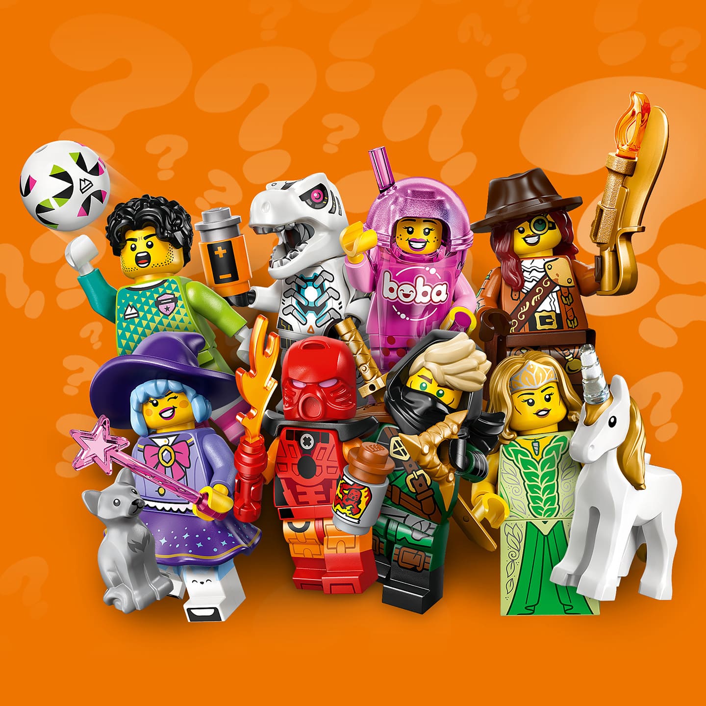 Toujours 3,99€ par minifig, avec comme d’habitude 12 personnages à collectionner : Bionicle Cosplayer, Football Goalkeeper, Marine Biologist, Tuba Player, Unicorn Elf, Monster Hunter, Robot T. rex, Chocolatier, Boba Cup Fan, Mysterious Ronin, Cute Witch, Trash Monster.