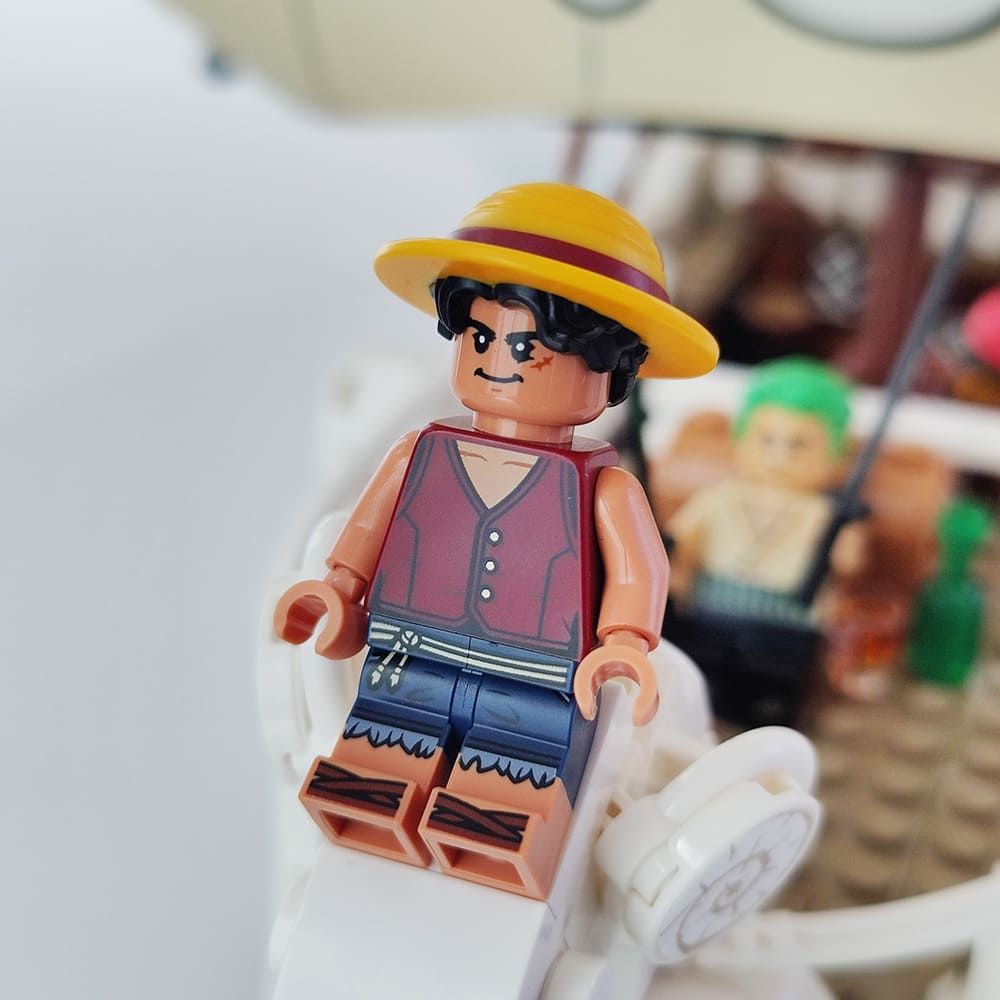 Et surtout l’équipage du chapeau de paille de la première saison au complet, en attendant d’obtenir davantage de personnages avec la saison 2 : Monkey D. Luffy, Zoro, Nami, Usopp et Sanji. On aurait pu s’attendre à voir LEGO répartir les personnages dans différents sets, technique marketing habituelle, il est appréciable de pouvoir tous les obtenir en passant une seule fois à la caisse.